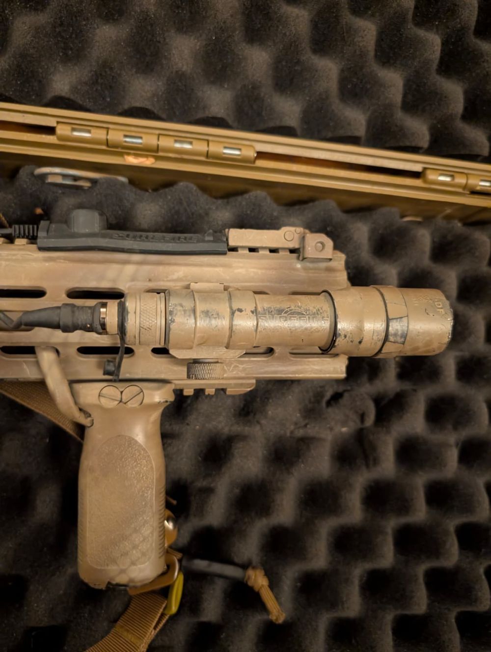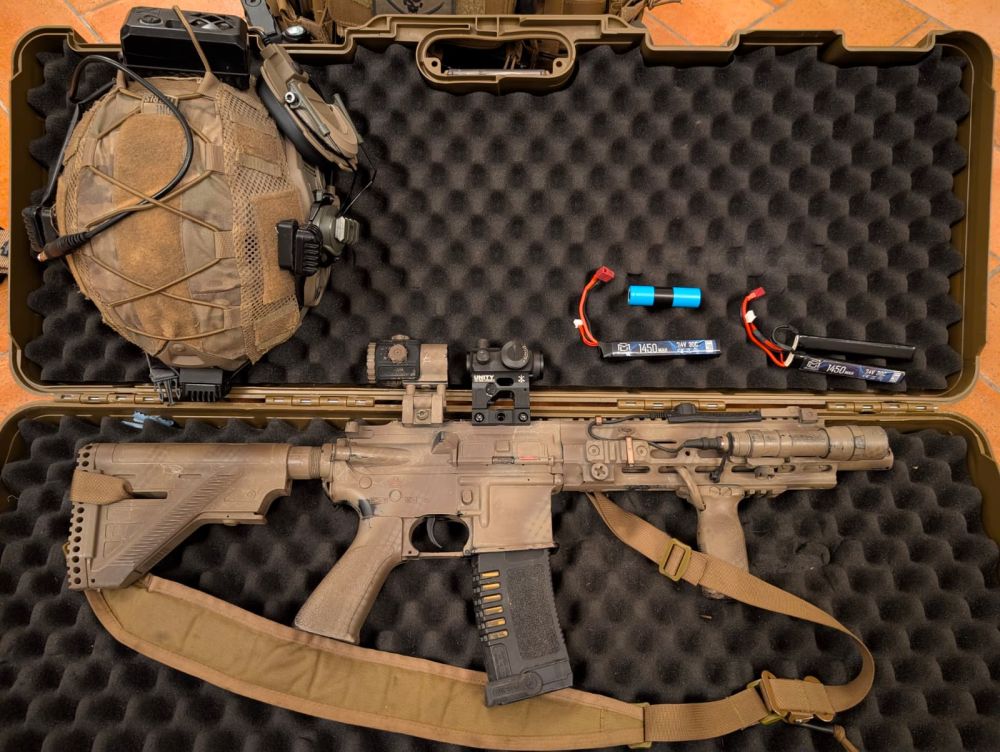 Vnedo per cessata attività replica HK 416 Geissele Specna Arms con kit assalto montato dai ragazzi di XTAG. La centralina è montata nell'impugnatura anteriore, leva armamento attiva, tasto di ricarica aggiuntivo sotto impugnatura. Compreso nel prezzo fornisco: Custodia rigida Negrini 2 batterie Lipo 1450 7.4 V Caricabatterie Lipo IMAX Headset Xtag su Elmetto Fast emerson con Bowman Batteria aggiuntiva Headset con relativo caricabatterie doppio red dot Aimo T1 con raiser replica Unity Magnifer x3 con fast mount Torcia replica Surefire con remoto 8 batterie per torcia con relativo caricatore Cinghia/cinghie disponibili 7 caricatori M4 softair svuotati Pagamento solo Paypal, spedizione a carico dell'acquirente, ritiro a mano Firenze o Pontedera